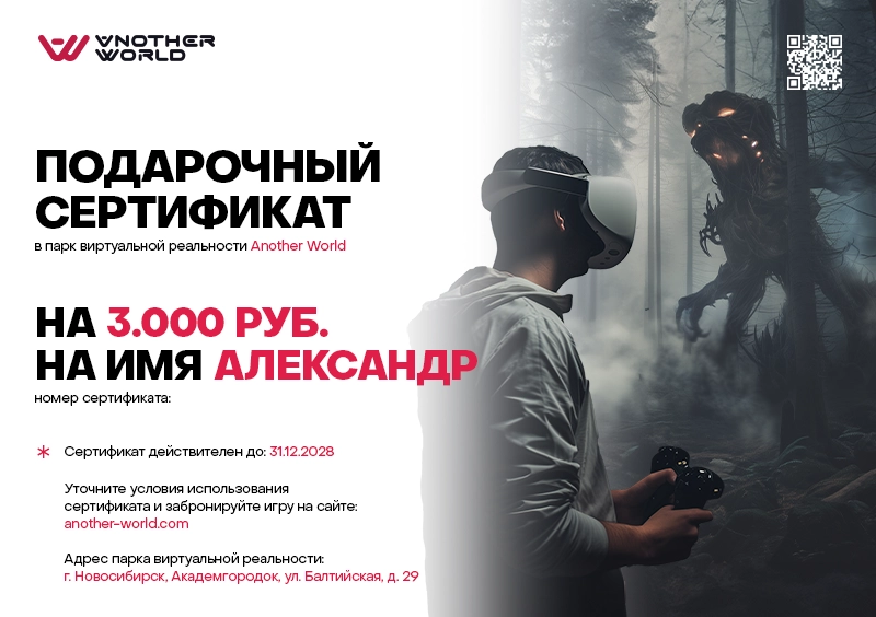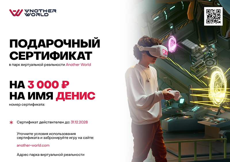 Сертификат можно получить самовывозом на нашей VR-арене.